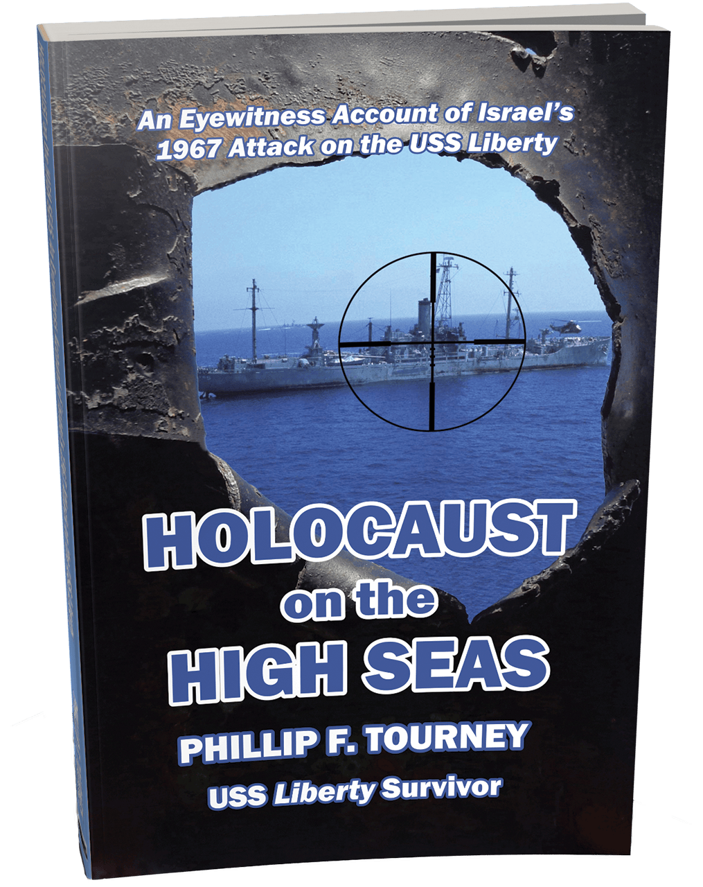 Phil Tourney provides an eyewitness account of Israel’s 1967 attack on the USS Liberty. While patrolling in international waters in the Eastern Mediterranean Sea on June 8, 1967, the unarmed, intelligence-gathering vessel confronted an enemy they never expected: Israel. In an unprovoked and vicious attack, unmarked Israeli jets pounded the Liberty with cannon fire, rockets, and napalm, while the American crew tried to make sense of what was happening, as their friends and shipmates were blown apart by the Zionist state’s weaponry. After the jets murdered nine helpless Americans, Israeli motor torpedo boats (MTBs) moved in for the kill, firing machine guns and launching five torpedoes, with one hitting its mark, instantly blasting apart 25 Liberty crewmen. The MTBs continued firing upon the damaged ship, hoping to hit the boilers, as those aboard were unsure if they were on their way to a watery grave, as the massive hole in the Liberty continued to let tons of seawater in. Expending their ammunition, the MTBs retreated, and a new, armed adversary approached the stricken vessel: Israeli troop helicopters with commandos aboard to finish the job. All the while, the nearby U.S. Sixth Fleet, hearing the Liberty’s cries for help, launched fighter aircraft, only to be recalled by the White House.
